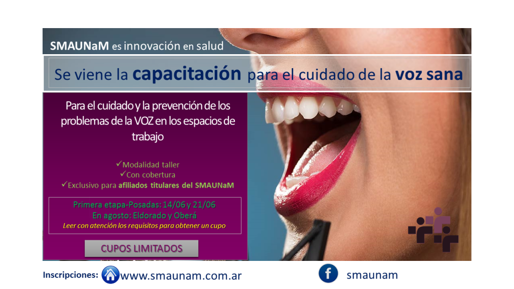 A partir del 14 de Junio, SMAUNaM ofrecerá una capacitación con cobertura exclusiva para el cuidado y la prevención de los problemas de la VOZ en los espacios de trabajo. La misma está destinada a aquellos afiliados titulares de la Obra Social que usan la voz como herramienta principal de su desempeño laboral y que […]