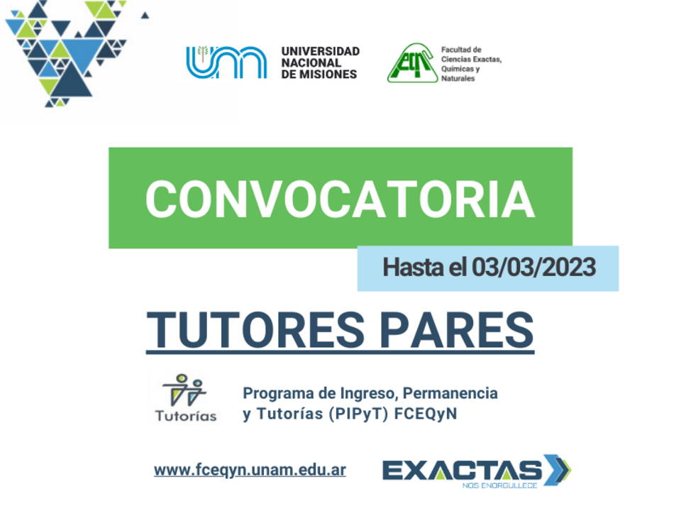 Hasta el 3 de marzo del corriente año se encuentran abiertas las inscripciones para participar como Tutores Pares (estudiantes) en el marco del Programa de Ingreso, Permanencia y Tutorías (PIPyT) de la FCEQyN. Los y las tutores pares son estudiantes regulares de la facultad que desempeñan acciones tutoriales, acompañando a los ingresantes durante su primer […]