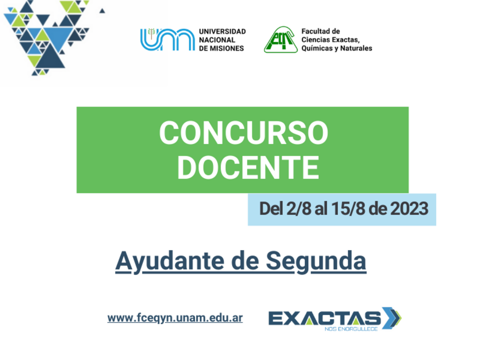 Del 2 de agosto al 15 de agosto de 2023, hasta las 12 horas, se encuentra abierta la inscripción al Concurso Nº 02-2023 para cubrir cargos de Ayudante de Segunda en la FCEQyN-UNaM.Res. CD N° 189/2020. Informes Departamento Área Concurso Docente Félix de Azara Nº 1552, primer piso. Días hábiles de 8 a 12 horas (Srta. Mónica Broemser) y […]