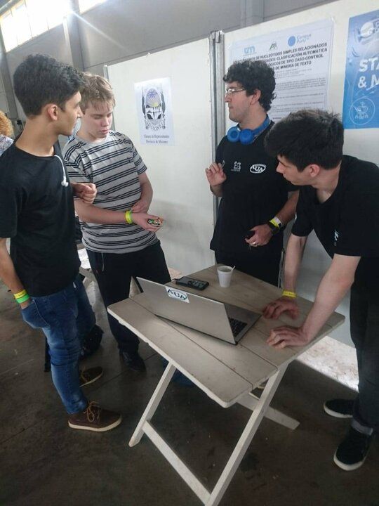 Otros trabajos presentados en el stand fueron “Clasificación Automática de Polimorfismos de Nucleótidos Simples relacionados al Riesgo de Enfermedades utilizando Técnicas de Minería de Texto”, de Mónica Mounier; “Modelado base en 3D para el desarrollo de realidad virtual”, de Nicolás Kosak; y “Cuento interactivo ‘Vida Universitaria’ desarrollado por estudiantes de 4º año del Profesorado en Computación con la herramienta QUANDARY”, presentado por Francisco Gregori.