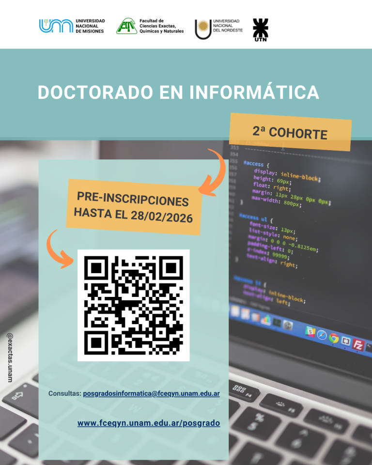 El Doctorado en Informática se realiza en la UNaM, en conjunto con la UNNE, y UTN-FRRe.