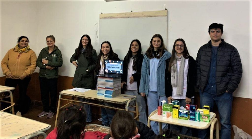 Estudiantes y docentes de la Cátedra de Práctica Profesional Farmacéutica de la carrera de Farmacia de la FCEQyN, promovieron el uso seguro de medicamentos entre estudiantes de 5° grado de la Escuela Nº 53 de Posadas, Misiones. 🏫👧👦